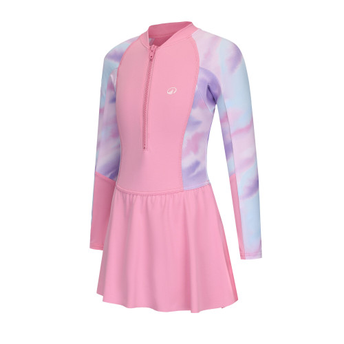 Surfing Girl's one-piece long-sleeve skirt swimsuit SUZY -TIEDYE PINK
